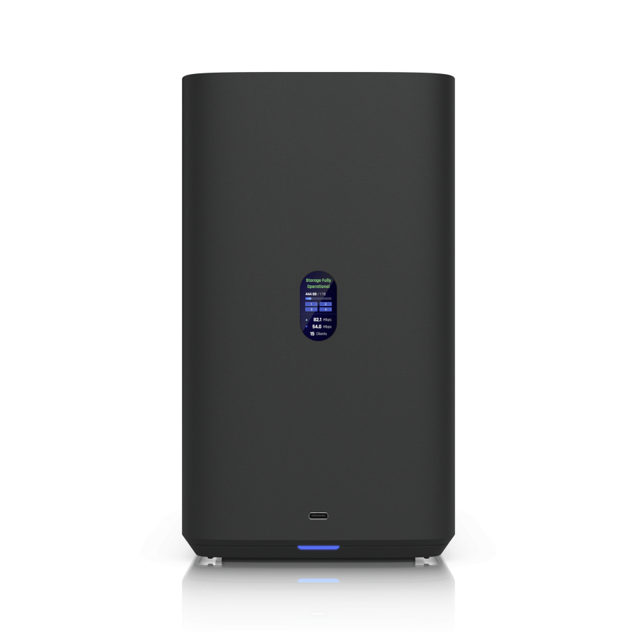Įmontuotas 1,47 colių spalvotas ekranas suteikia greitą prieigą prie sistemos būsenos ir svarbiausios informacijos, supaprastindamas stebėjimą ir valdymą. Ryšio galimybės apima Ethernet tinklo valdymui ir Bluetooth 4.1 papildomam konfigūravimo lankstumui. UNAS 4 suprojektuotas patikimai veikti -5–40 °C temperatūrų diapazone ir palaiko 10–90 % drėgmės lygį be kondensato susidarymo. Sertifikuotas pagal pramonės standartus ir atitinkantis NDAA reikalavimus, jis tinka profesionaliam diegimui, kur patikimumas ir atitiktis yra esminiai.