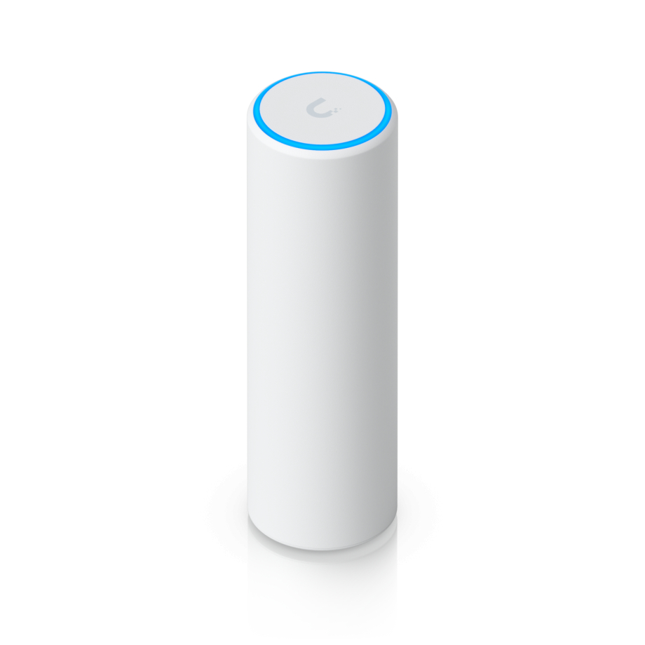 Ubiquiti U7 Mesh – tai kompaktiškas, tačiau galingas prieigos taškas, sukurtas užtikrinti naujos kartos belaidžio ryšio našumą pagal WiFi 7 (802.11be) standartą. Dėl modernaus cilindrinio dizaino ir matmenų (⌀48,5 × 159,5 mm) jis tinka tiek vidaus, tiek lauko sąlygoms, užimant minimaliai vietos. Šis modelis palaiko 4 erdvinės srautus ir veikia su 2×2 DL/UL MU-MIMO tiek 5 GHz, tiek 2,4 GHz dažnių juostose, užtikrindamas efektyvų vienalaikį ryšį su keliais įrenginiais. Jis pasiekia maksimalų duomenų perdavimo greitį iki 4,3 Gbps 5 GHz dažnių juostoje (BW240) ir iki 688 Mbps 2,4 GHz dažnių juostoje (BW40), užtikrindamas stabilų našumą didelės pralaidumo programoms. Įrenginys taip pat palaiko kelis „WiFi“ standartus, įskaitant 802.11be (WiFi 7), 802.11ax (WiFi 6) iki 2,4 Gbps, 802.11ac (WiFi 5) iki 1,7 Gbps ir 802.11n iki 300 Mbps, užtikrindamas atgalinį suderinamumą.